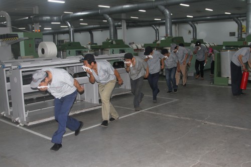 本次演練以精紡公司一車間細紗車間細紗機出現(xiàn)火警事故為具體方案。在演練過程中,嚴格按照公司滅火應(yīng)急預(yù)案程序進行。整個演練過程組織周密、環(huán)節(jié)緊湊、系統(tǒng)性強,是公司消防安全應(yīng)對突發(fā)性事件在組織、協(xié)調(diào)、指揮、滅火、疏散、救援等方面的一次全面鍛煉。