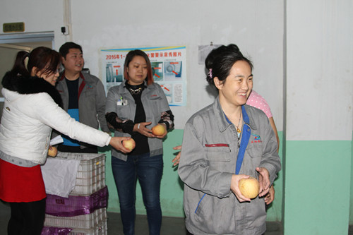 為慶祝國際婦女節(jié),3月8日,公司工會以表達對全體女職工的關(guān)心、關(guān)愛為出發(fā)點,開展了“平安祝福伴你行”活動。工會女委員及部分后勤部室的女職工代表參加了此次活動。 本次活動分兩部分:一是為工會為車間帶去部分安全知識書籍;二是工會為女職工送去一個平安祝福(蘋果)和一聲節(jié)日的問候。 在活動過程中,通過深入一線為員工送出平安祝福和節(jié)日問候的同時,公司工會也送上了公司對女職工的關(guān)心和關(guān)愛。
