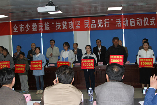 4月11日下午,省民委副主任左亭、省民委民族二處處長羅軍一行在副市長王吉能、市民宗局局長劉志堅(jiān)以及縣委副書記、縣長燕振誠等市縣領(lǐng)導(dǎo)的陪同下就全市少數(shù)民族“扶貧攻堅(jiān),民品先行”活動(dòng)到我公司舉行啟動(dòng)儀式并進(jìn)行了參觀調(diào)研,公司總經(jīng)理徐建民、財(cái)務(wù)總監(jiān)張堯宗參與接待并陪同參觀。