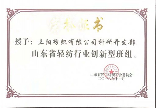 11月28日上午,由山東省輕紡行業(yè)工會(huì)舉辦的全省輕紡行業(yè)職工素質(zhì)提升現(xiàn)場(chǎng)推進(jìn)會(huì)議在淄博舉行。本次會(huì)議上表彰了輕紡行業(yè)職工優(yōu)秀技術(shù)創(chuàng)新成果、創(chuàng)新工作室、創(chuàng)新型班組、創(chuàng)新能手及輕紡行業(yè)“齊魯工匠”,我公司供建部部長(zhǎng)陳新慶同志在眾多評(píng)選者中脫穎而出,被授予“齊魯工匠”榮譽(yù)稱號(hào),科研開(kāi)發(fā)部被授予“山東省輕紡行業(yè)創(chuàng)新型班組”榮譽(yù)稱號(hào)。