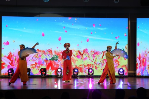 本次晚會以“奮進(jìn)新時(shí)代”為主題,以《贊贊贊新時(shí)代》拉開晚會的序幕,共分:不忘初心、躍身潮頭、時(shí)代新篇三個(gè)篇章,節(jié)目內(nèi)容豐富,形式多樣。晚會現(xiàn)場播放的三陽紡織有限公司時(shí)代新篇——奮進(jìn),將近三年來公司發(fā)生的翻天覆地的變化以記錄片的形式與員工共同分享,更加堅(jiān)定了全體員工對公司發(fā)展的信心。晚會現(xiàn)場,節(jié)目精彩不斷,有精彩的歌伴舞《不忘初心》、歌曲《新的天地》、還有大型舞蹈《中國結(jié)》,其中音舞快板《魅力三陽,展新篇》以其明快的節(jié)奏、優(yōu)美的旋律、將三陽公司發(fā)展過程中的亮點(diǎn)用膾炙人口的語言,精彩的表演出來,博得了滿堂喝彩。