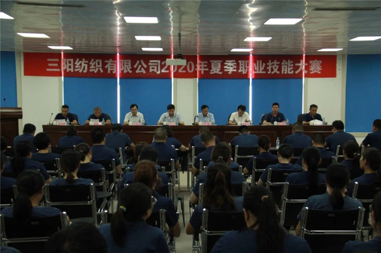 7月14日上午,由利津縣總工會、利津縣人力資源和社會保障局主辦,三陽紡織有限公司承辦的2020年夏季職業(yè)技能大賽開幕式在公司辦公樓三樓會議室隆重舉行。利津縣總工會黨組書記、常務副主席黃昕,縣人力資源和社會保障局副局長張愛國,利津縣總工會職工服務中心主任劉榮亮,利津縣人力資源和社會保障局技能鑒定辦公室主任張利勇,公司董事長兼總經理張堯宗,公司副總經理、總工程師李大松、公司副總經理徐西國出席并參加了開幕式。會議由公司副總經理兼工會主席李小兵主持。.jpg)