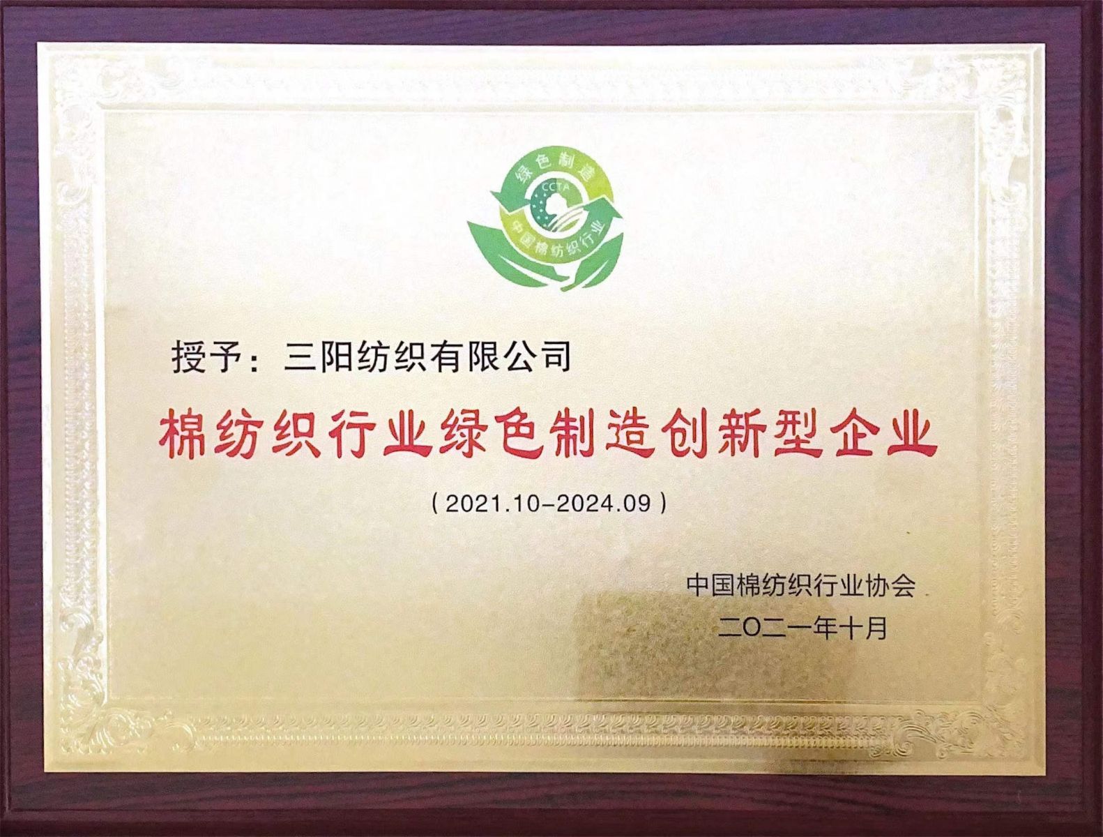 近日,我公司成功入選“2021年度中國棉紡織行業(yè)綠色制造創(chuàng)新型棉紡織企業(yè)”,我公司“粗紗吹吸風改造項目”和“細紗回送風風機變頻改造項目”成功入選第九批《中國棉紡織行業(yè)綠色制造技術(shù)暨創(chuàng)新應用目錄》。.jpg) .jpg)
