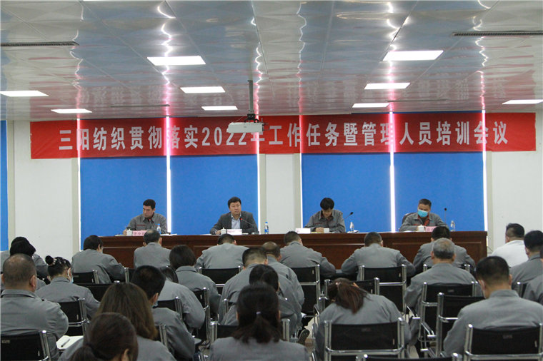 3月15日,三陽(yáng)紡織有限公司貫徹落實(shí)2022年工作任務(wù)暨管理人員培訓(xùn)會(huì)議在公司辦公樓三樓會(huì)議召開,集團(tuán)副總經(jīng)理、公司董事長(zhǎng)總經(jīng)理張堯宗同志發(fā)表重要講話。公司副總經(jīng)理劉虎城、李小兵、徐西國(guó)出席會(huì)議并在主席臺(tái)就坐,公司中層以上管理人員、后基層管理人員代表共計(jì)80人參加了會(huì)議。
