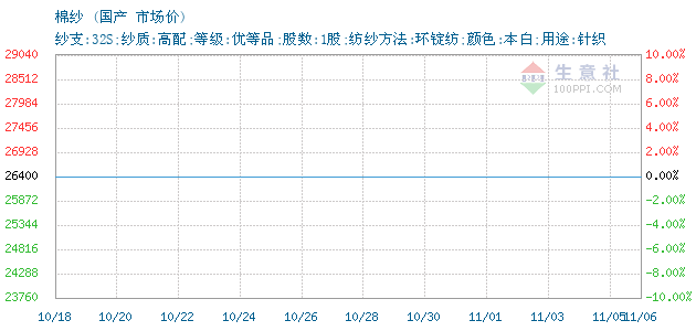 11月06日國產(chǎn)棉紗32S為26400元