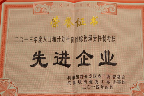 4月10日上午,經(jīng)濟(jì)開發(fā)區(qū)、鳳凰城街道2013年度人口和計(jì)劃生育目標(biāo)責(zé)任獎懲兌現(xiàn)暨工作會議在開發(fā)區(qū)十二樓會議室舉行。在會上,公司榮獲2013年度“人口和計(jì)劃生育工作先進(jìn)企業(yè)”稱號;公司劉真真同志榮獲“人口和計(jì)劃生育工作先進(jìn)個人”稱號。