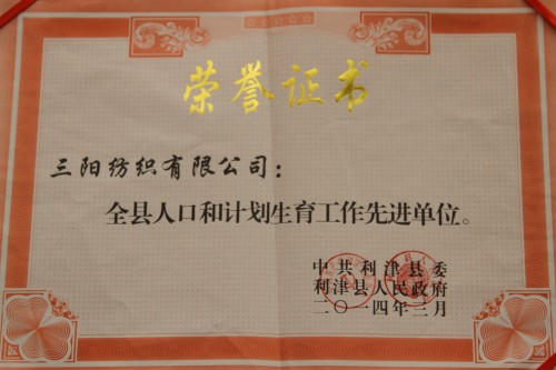 3月24日,全縣2013年度人口和計(jì)劃生育目標(biāo)責(zé)任獎(jiǎng)懲兌現(xiàn)暨工作會(huì)議在利津縣賓館迎賓樓第一會(huì)議室舉行。我公司榮獲全縣人口和計(jì)劃生育工作先進(jìn)單位。