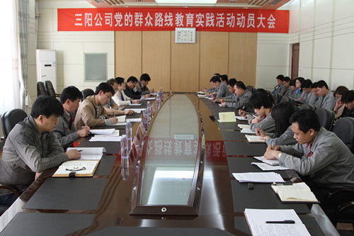 4月16日下午,三陽公司黨的群眾路線教育實踐活動動員大會在辦公樓二樓會議室召開,縣經(jīng)信局扈文芹局長、郭邦興主任以及公司黨員、中層以上管理人員,共33人參加大會。